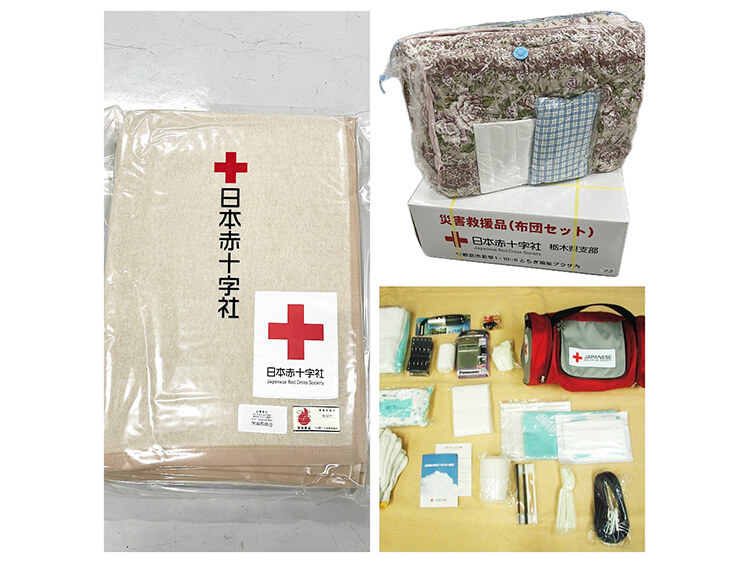 宇都宮市地区では、市内で自然災害や火災などの被害を受けた方に対し、栃木県支部が整備した災害救援物資の配付と弔慰金の対応を行っています。